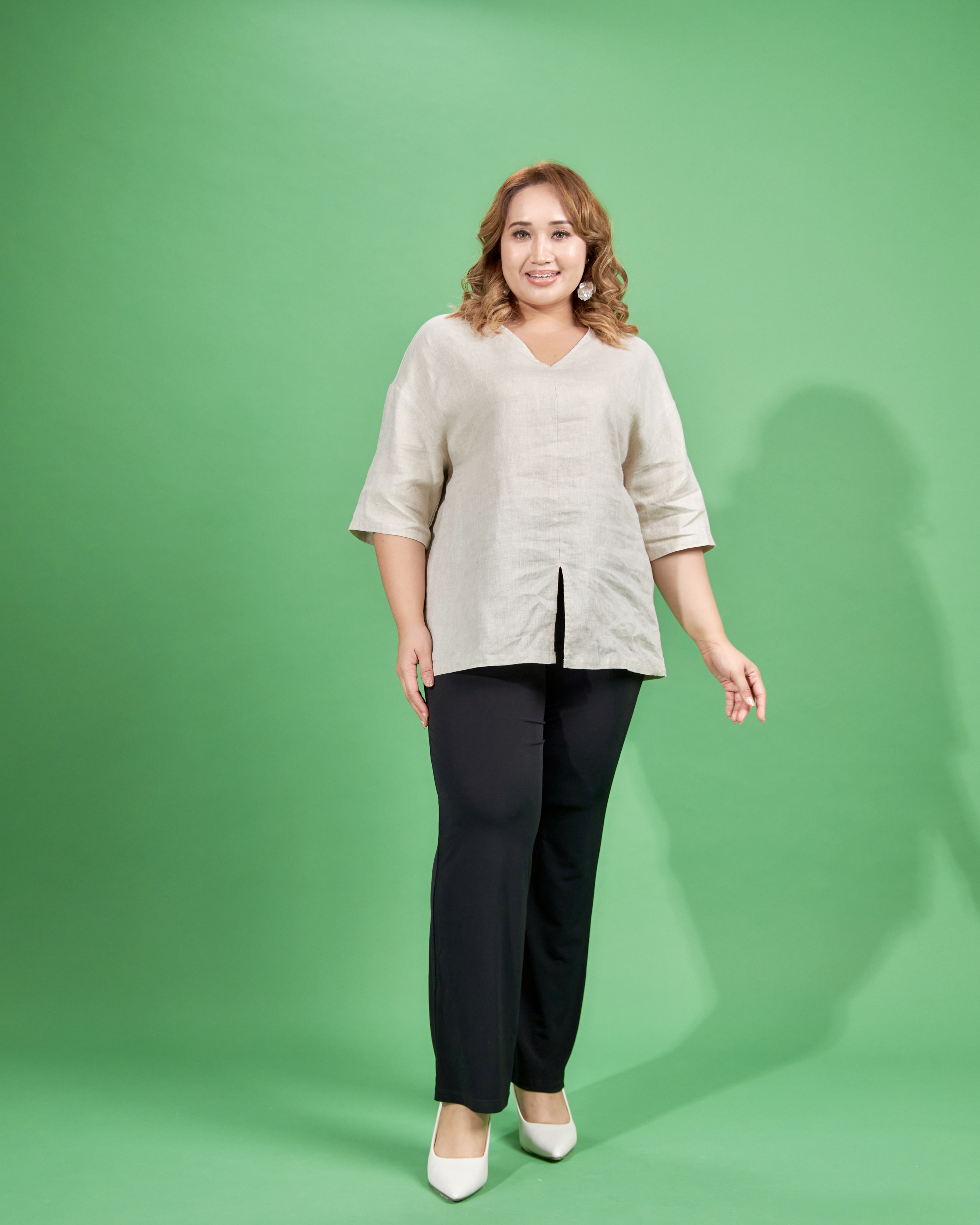 LINEN V NECK TOP ACY0031